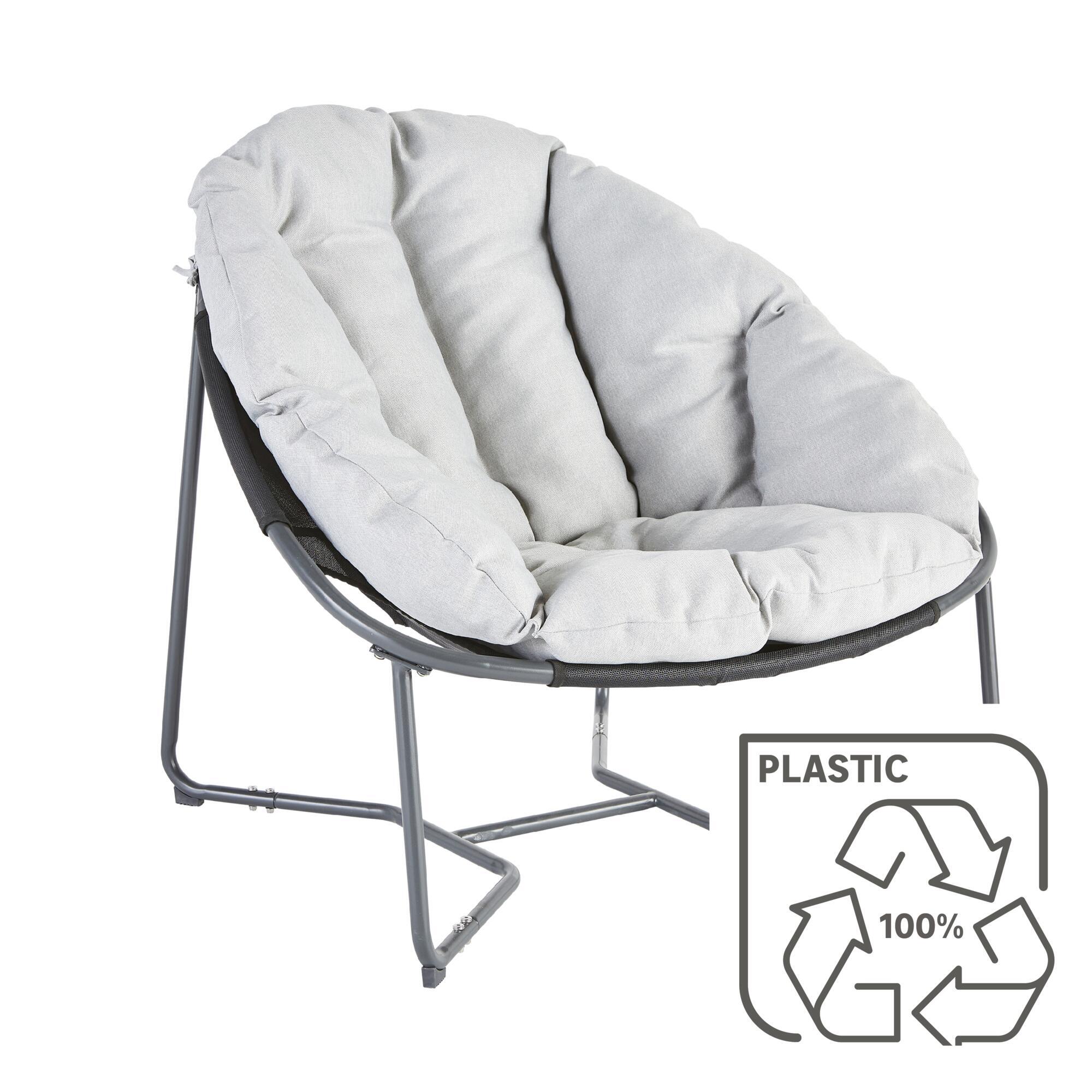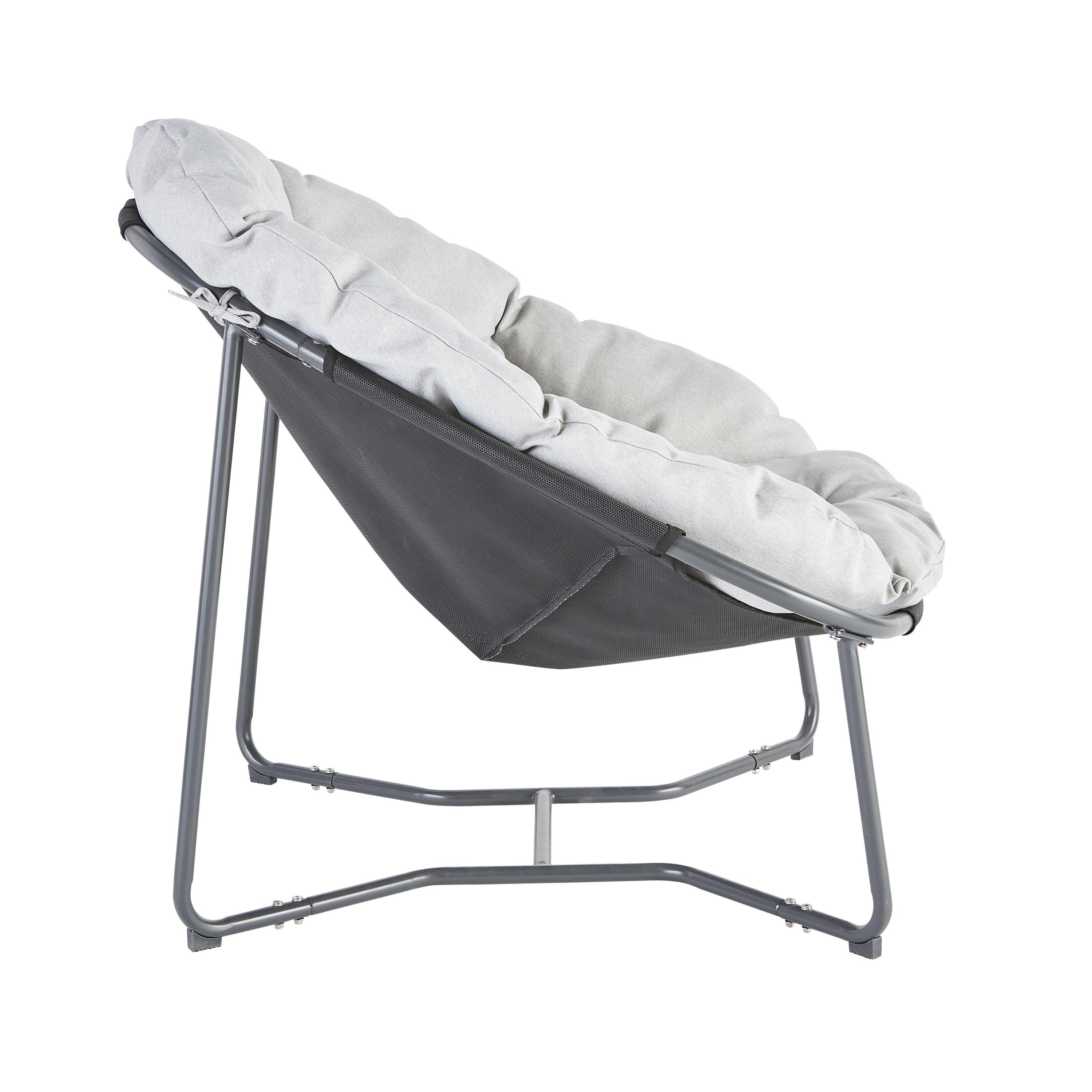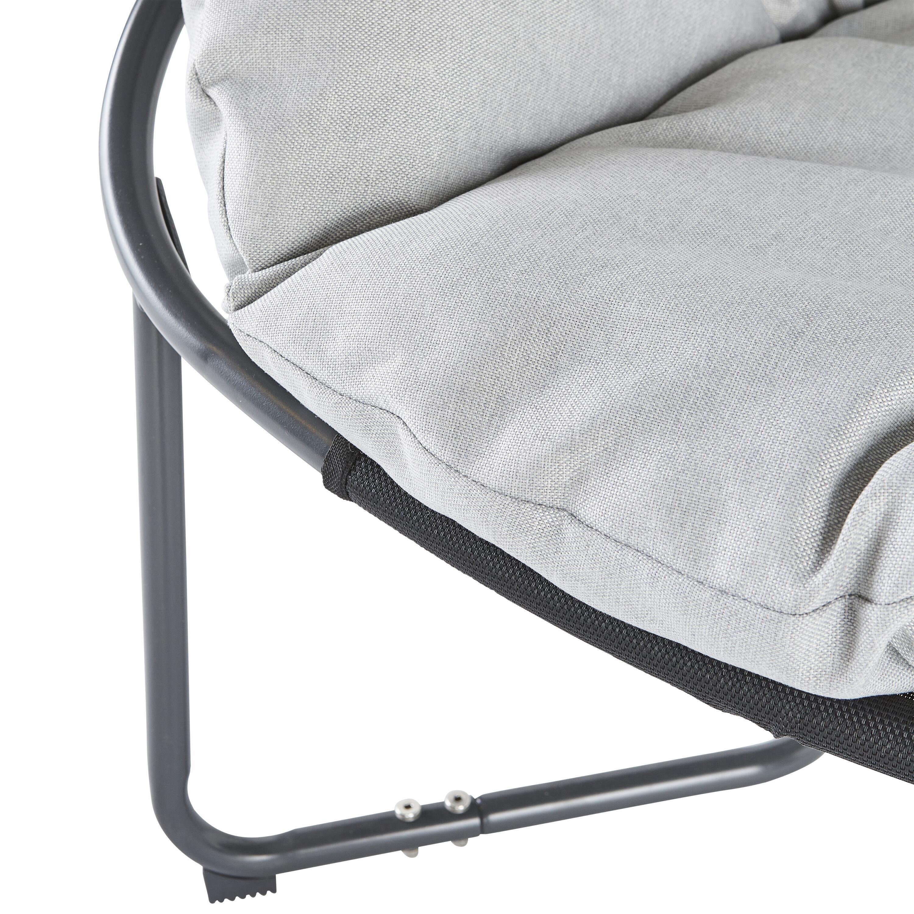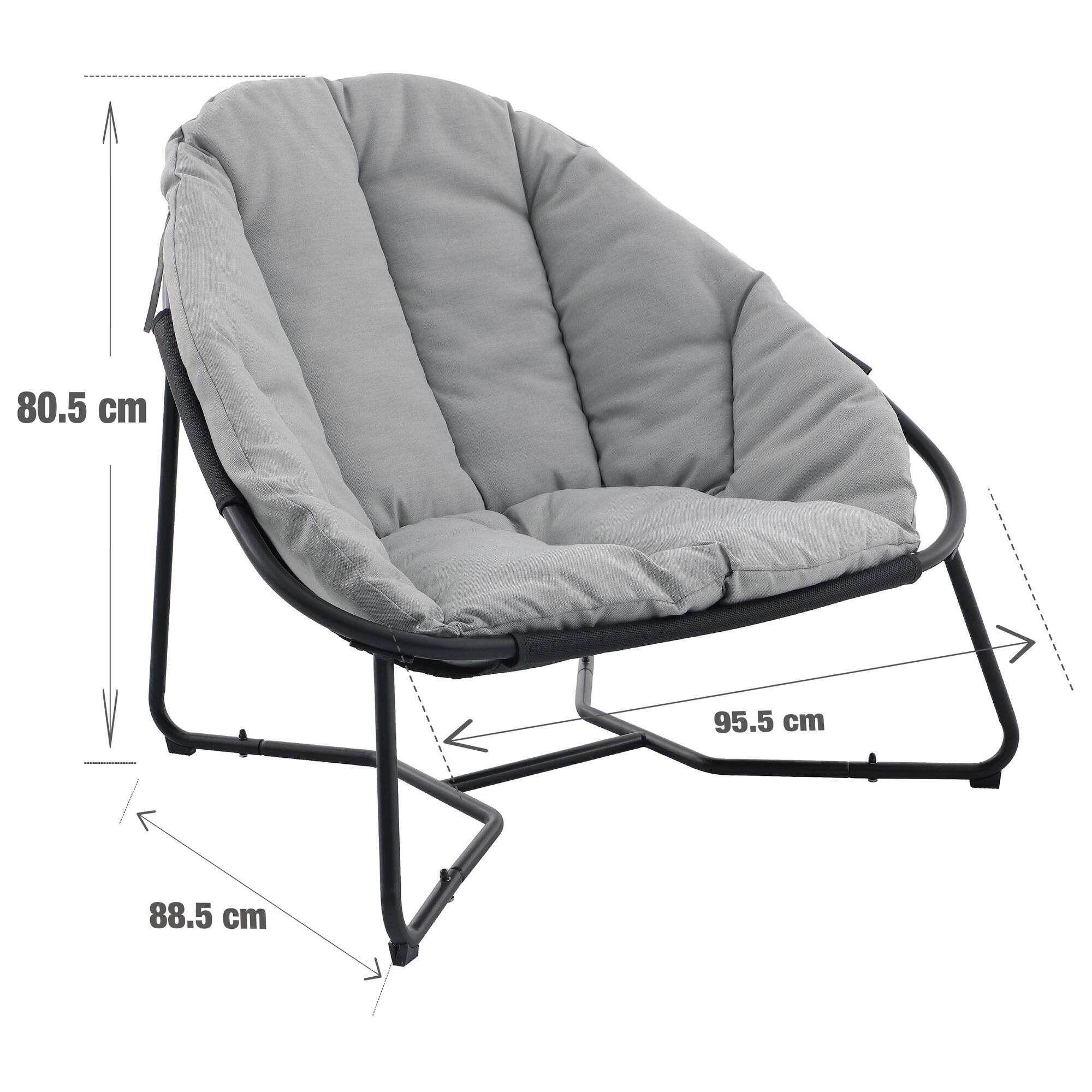 כורסת רביצה מפלדת אל חלד, צבע אפור כהה, כרית מושב נוחה במיוחד