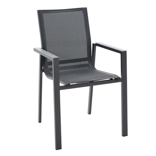 כיסא אוכל לחצר עם ידיות וגב מחובר אפור כהה ODYSSEA