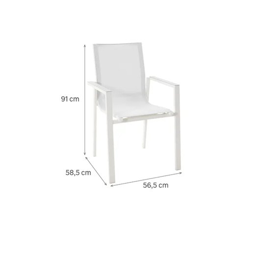 כסא גן ללא כרית ODYSSEA GAMMA Naterial. יש לו מבנה עשוי אלומיניום אפור ושחור ומושב טקסטיל. אידיאלי ליהנות מרגעים מרגיעים בחוץ. ניתן לערום כך שקל לאחסן אותו, והוא מגיע בהרכבה מראש. הוא 3 שנות אחריות. מידות: 56.5 על 91 על 58.5 ס"מ (רוחב x גובה x עומק).