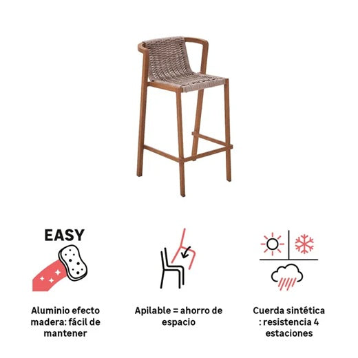 כיסא בר לגינה מאלומיניום וראטן סינטטי דגם GAIA