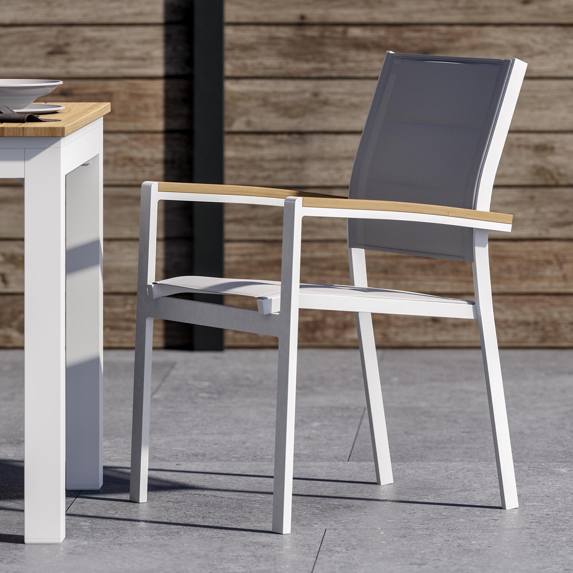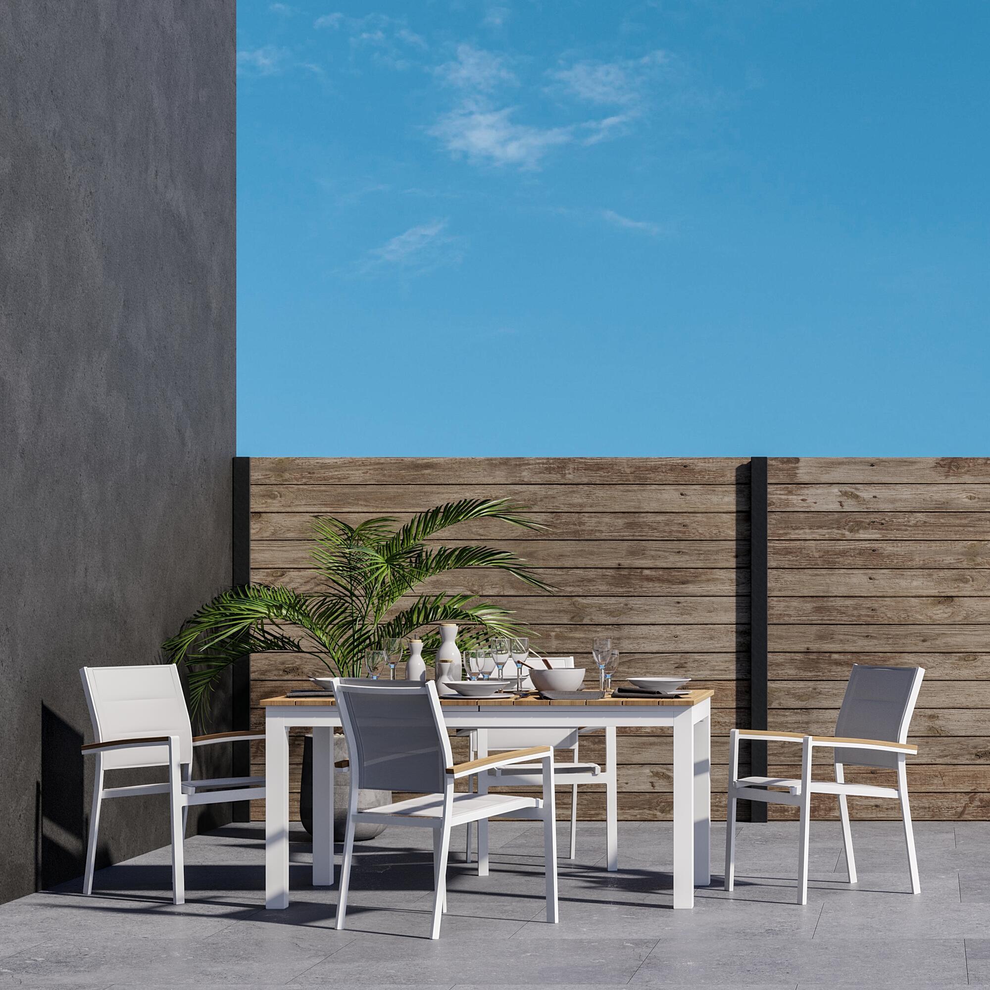 לארוחות בחוץ, בחרו בכיסא San Diego. השילוב של אלומיניום, בד טקסטילן ועץ אקליפטוס הופך אותו לחזק, עמיד ואטרקטיבי.