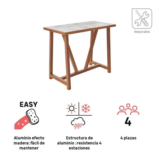 שולחן אוכל גינה מלבני טבעי עם מסגרת אלומיניום ומשטח קרמי במגוון צבעים. מתאים ל-4 אנשים, אידיאלי לארגון כל מיני מפגשים בחוץ עם משפחה וחברים. מוצר זה ניתן לתיקון ומגיע עם אחריות ל-3 שנים;