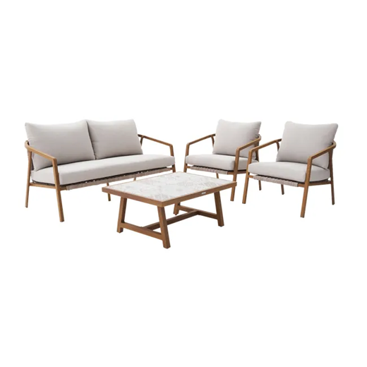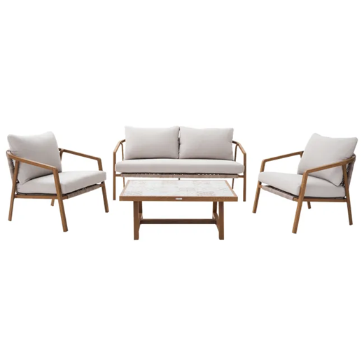 ספה דו מושבית + 2 כורסאות תואמות + שולחן אלומיניום וקרמיקה