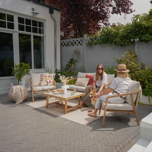 סט ריהוט מרפסת 4 מושבים Naterial Gaia. הוא מורכב משולחן מלבני עם מבנה אלומיניום בז' ופלטת קרמיקה, ומושב נצרים. אידיאלי לבילוי רגעים נעימים בחוץ בחברת משפחה וחברים. מוצר זה ניתן לתיקון ויש לו 3 שנות אחריות.