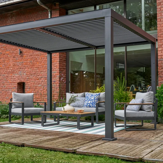 מערכת ישיבה מאלומיניום אפור כהה משולב עץ טיק PERSEA