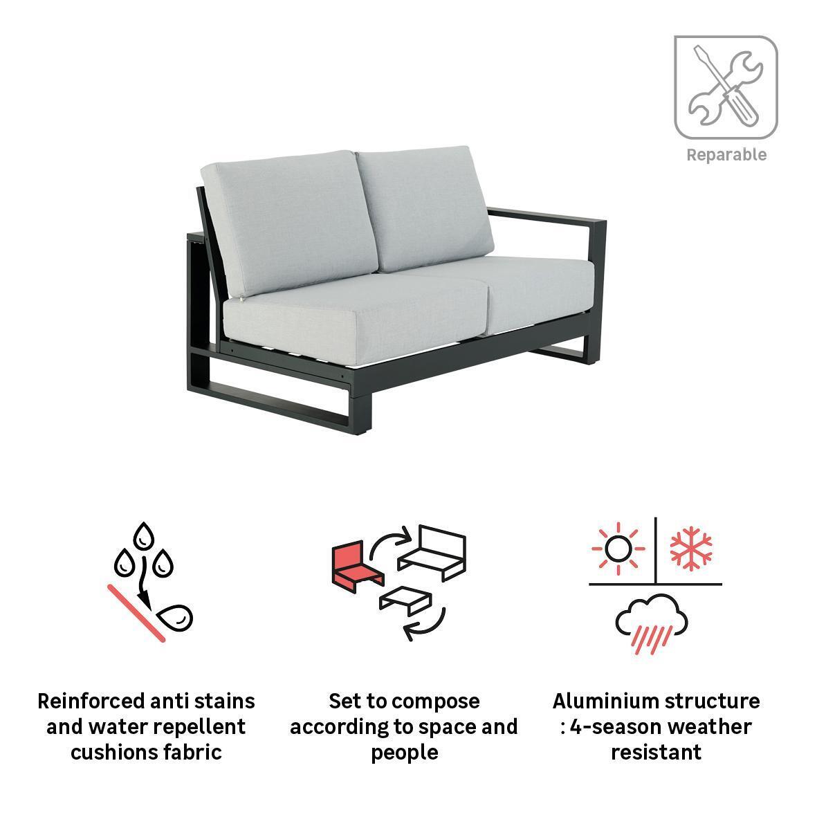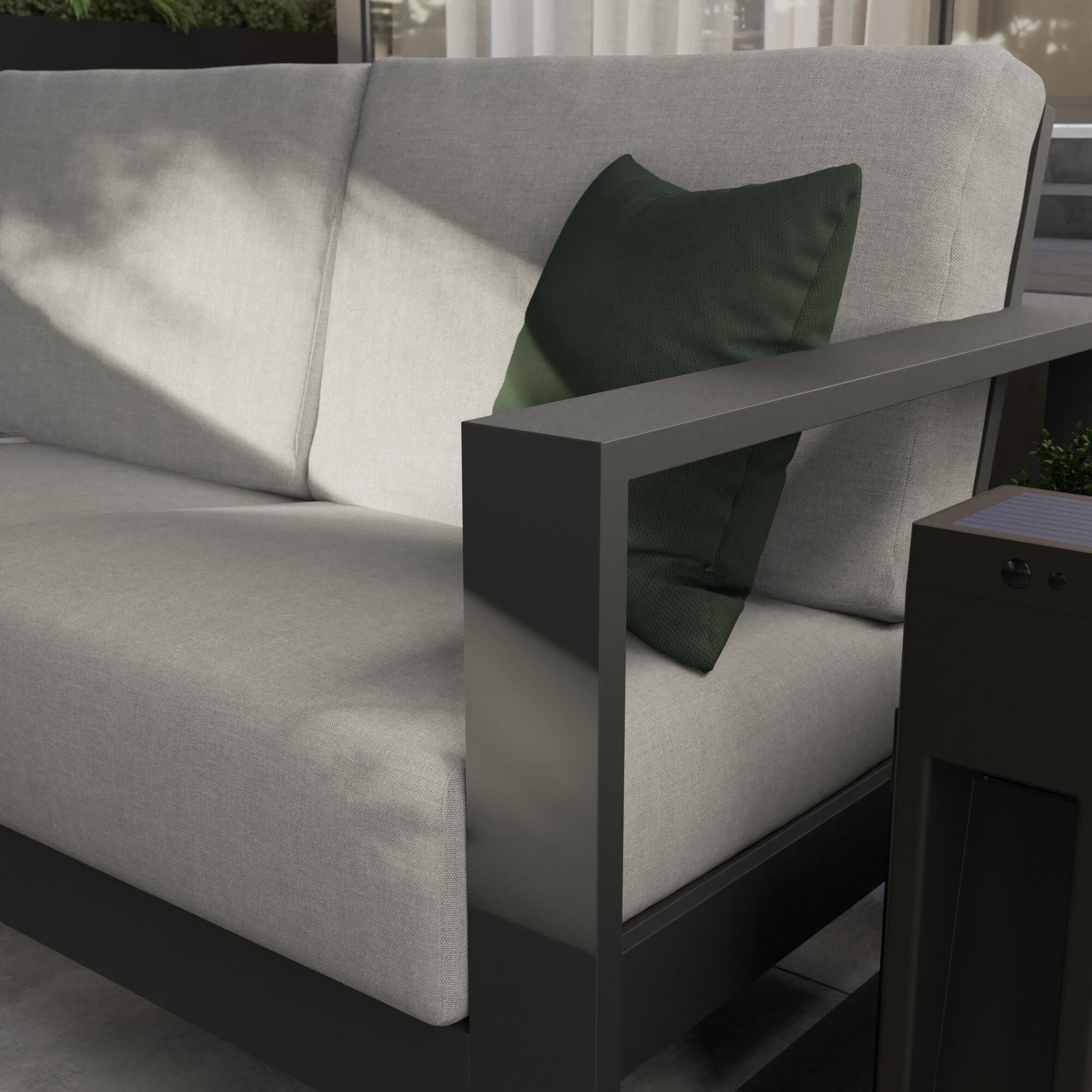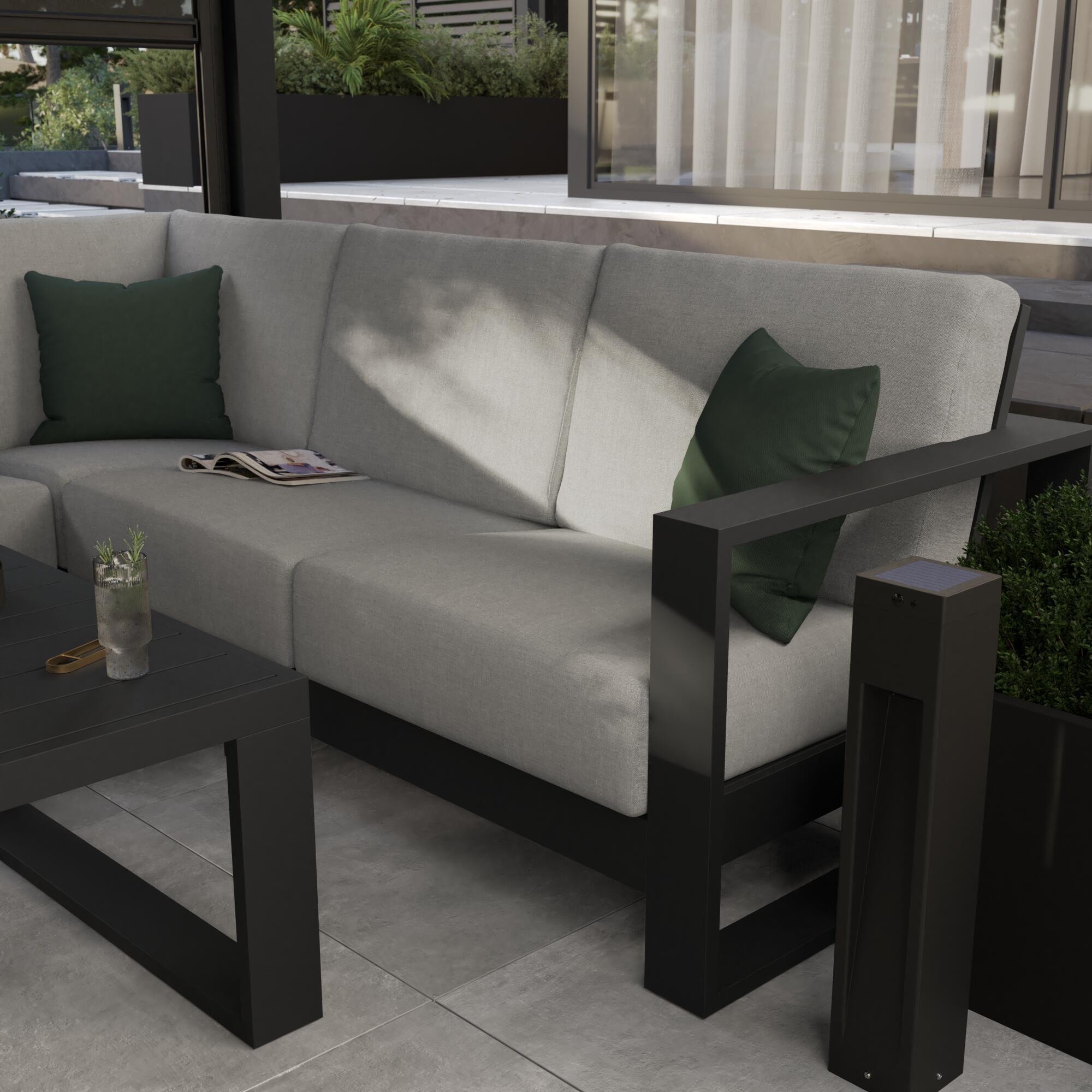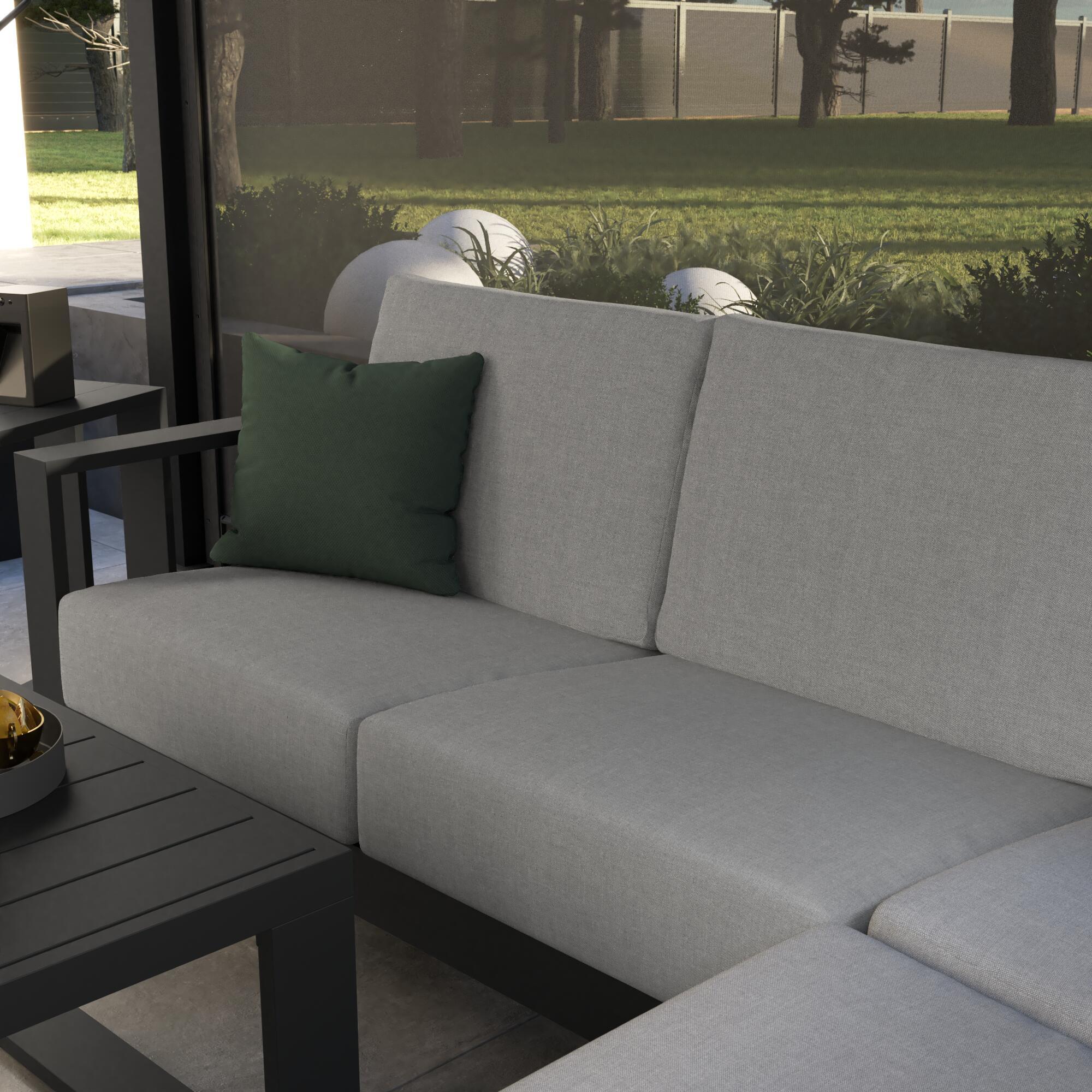 ריהוט גן פינתי מעוצב משלב נוחות ואלגנטיות למרפסת או לגינה ספת כרית רחבה ועבה זו מציעה מושב אופטימלי כריות עמידות למים ,כיסוי ניתן להסרה שילדת אלומיניום