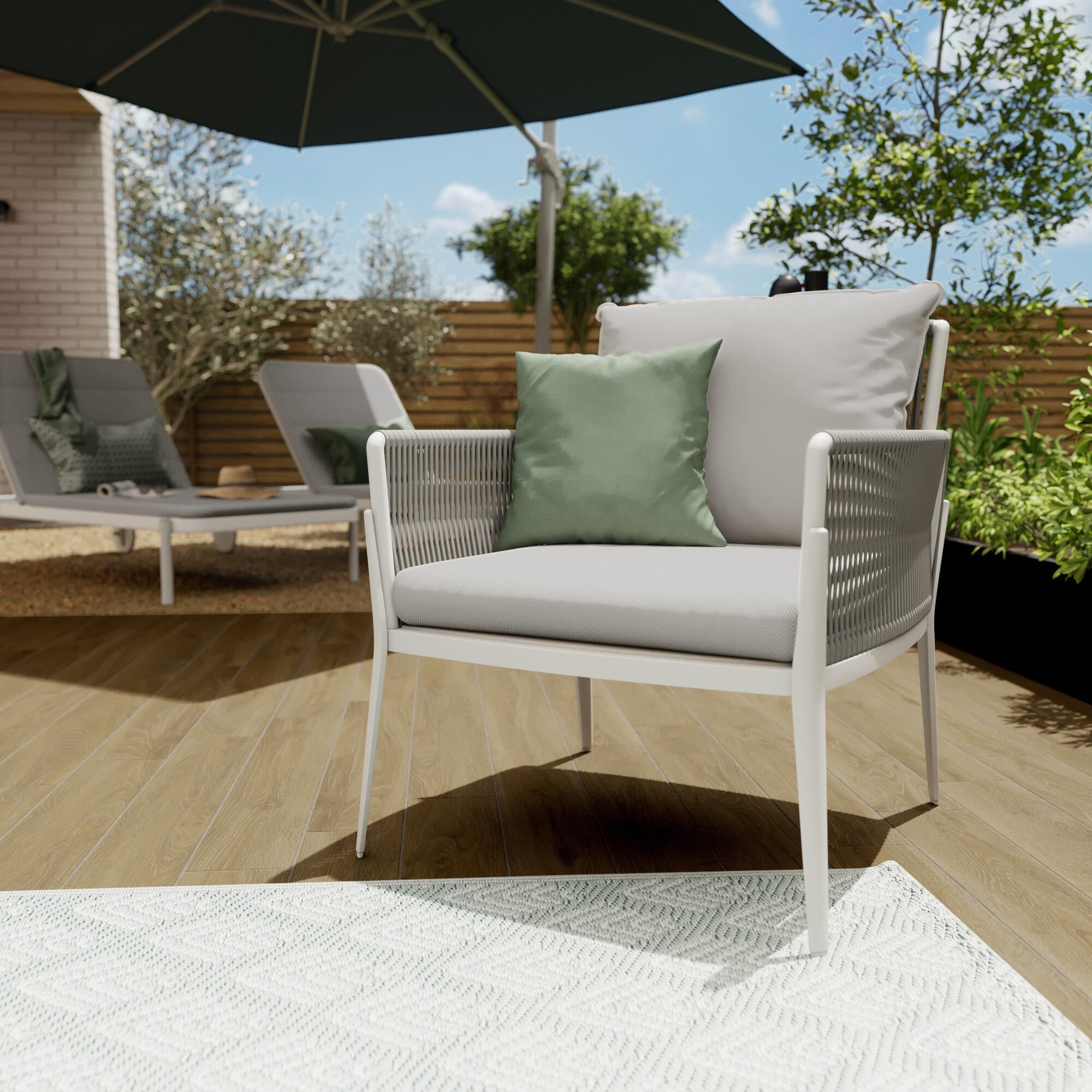 מערכת ישיבה מעוצבת לגינה מבית נטריאל ריהוט גן דגם HYDRA. כוללת: ספה דו מושבית + 2 כורסאות יחיד + שולחן תואם.