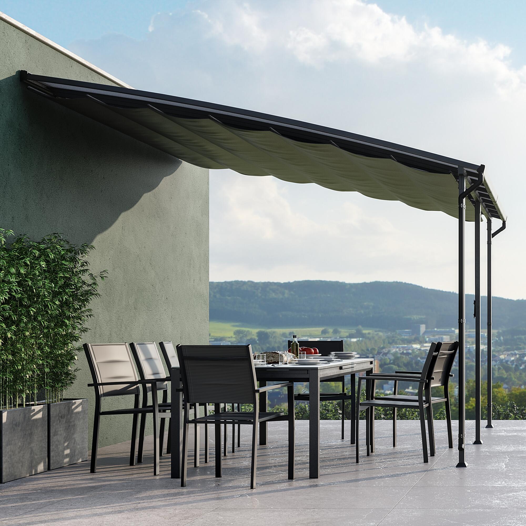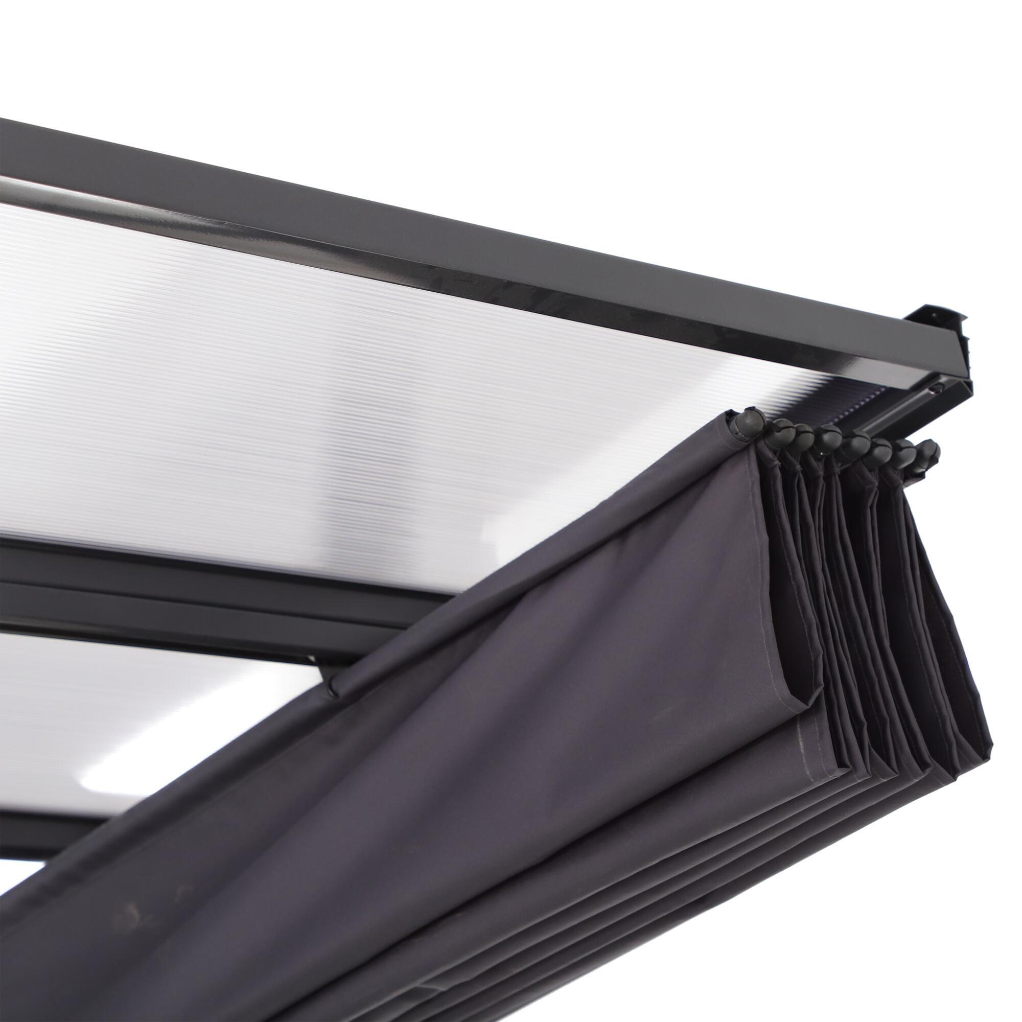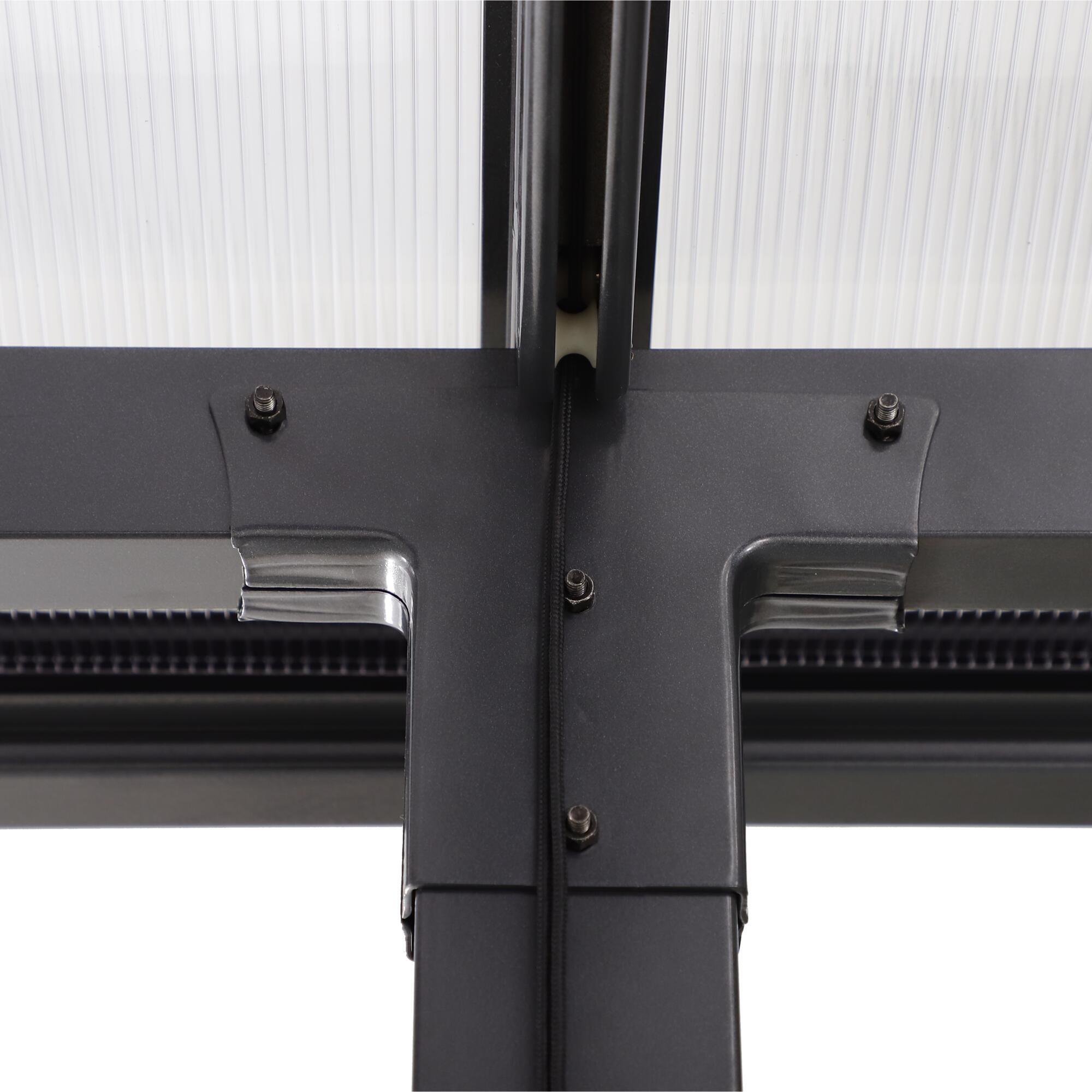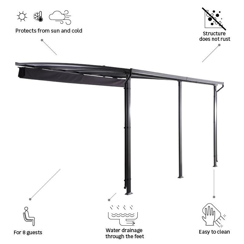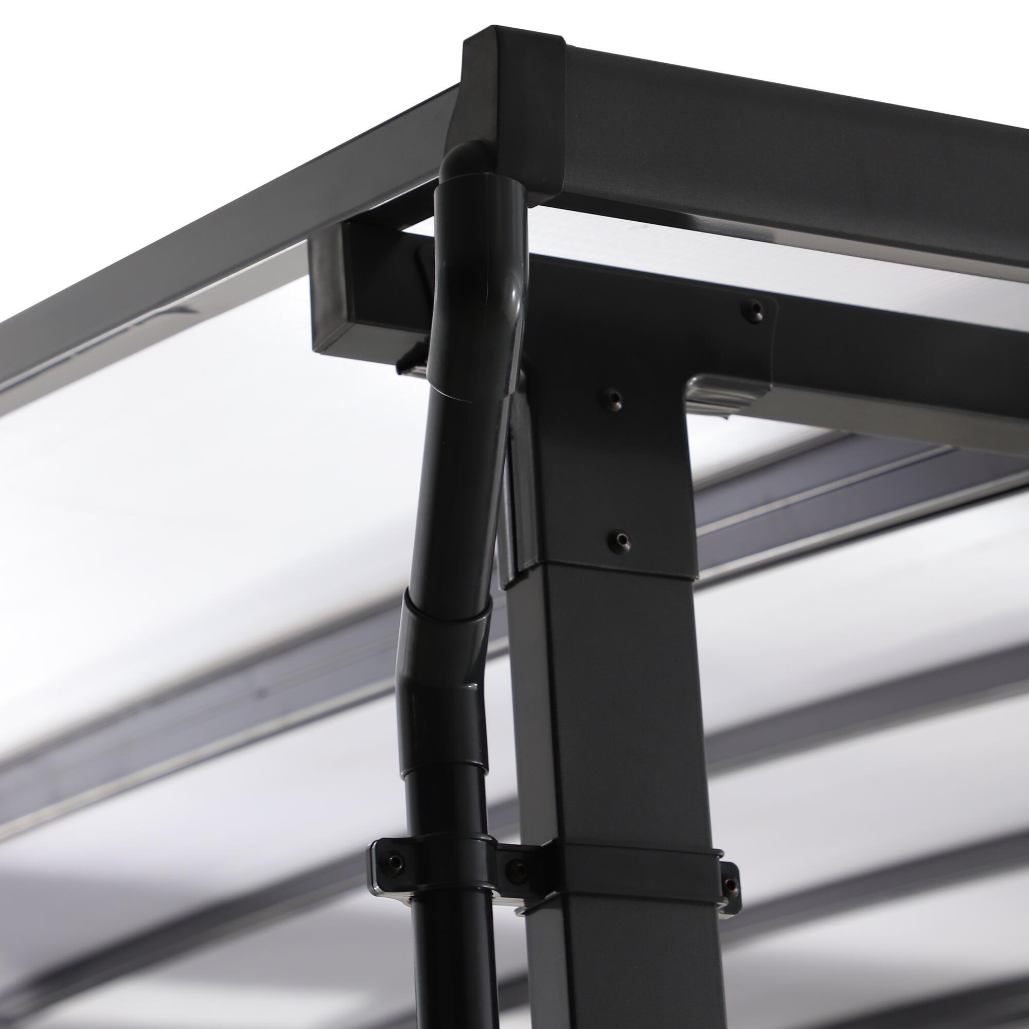פרגולת מפלדת אל חלד וגג סנטף כולל 2 מרזבים צדדיים