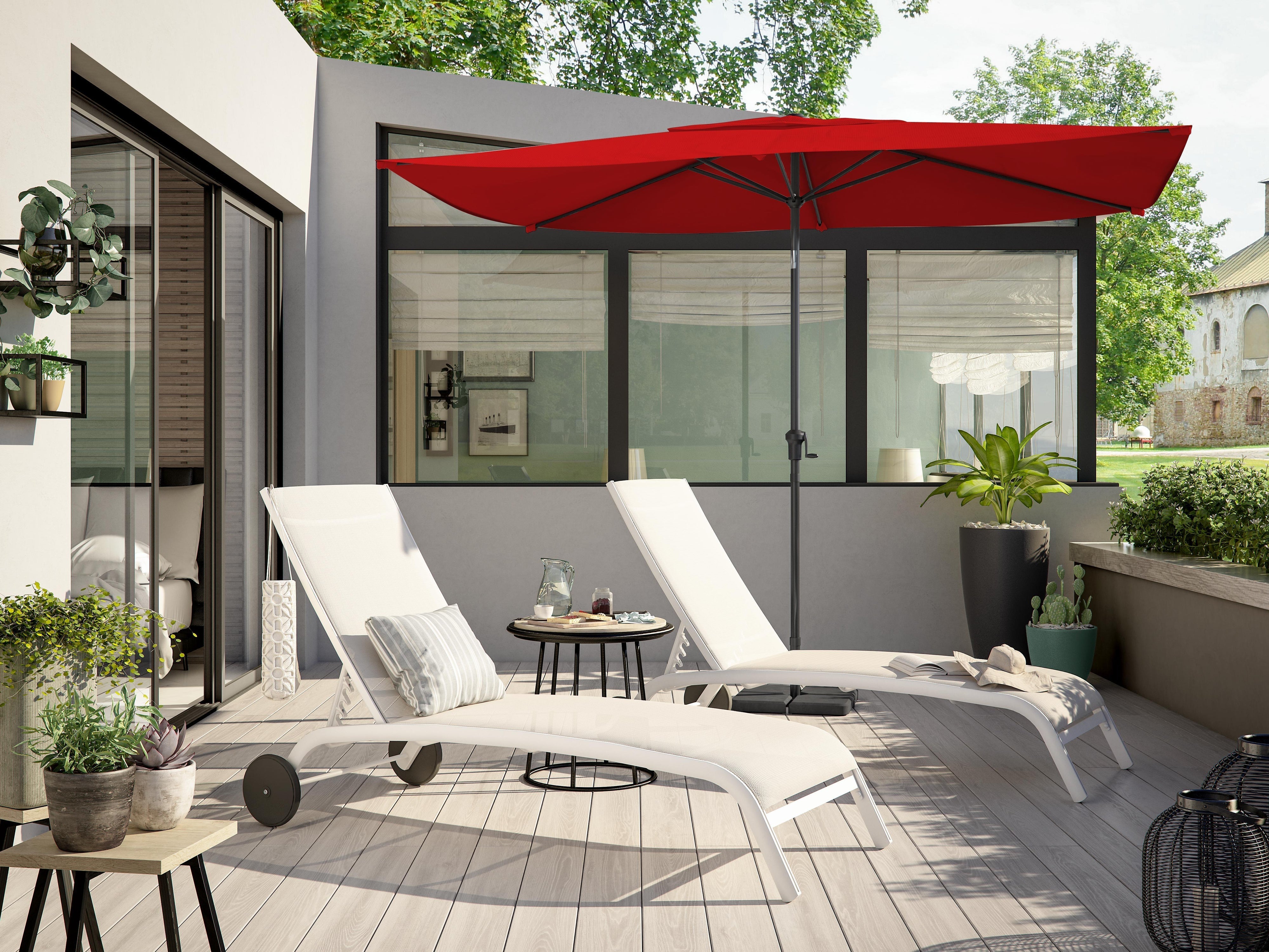 השמשייה הניצבת Aura מגנה על האורחים שלכם מפני השמש על פני שטח גדול. הסוכך הריבועי עבה במיוחד ושטחו 3*2 מטרים, הוא דוחה מים וחוסם 95% מקרני ה-UV. ניתן להזיז את השמשייה עם תנועת השמש ולאחר השימוש ניתן לסגור את השמשייה בקלות באמצעות הידית הצדדית. מבנה האלומיניום אינו מחליד ועמיד בפני פגעי מזג אוויר. כדי להאריך את חיי השמשייה, ניתן להחליף ולהתאים את הסוכך בהתאם לסגנון המועדף עליכם