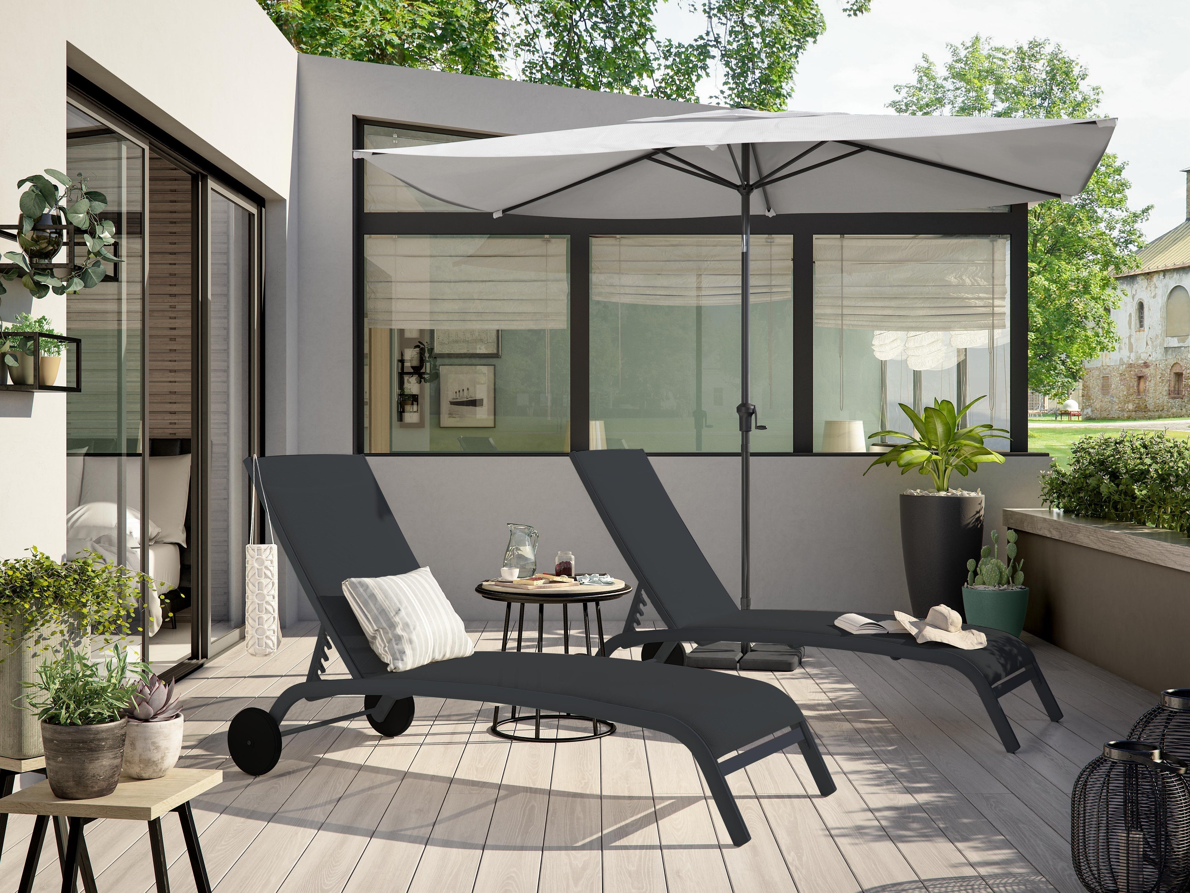 השמשייה הניצבת Avea Center מגנה על האורחים שלכם מפני השמש על פני שטח גדול. הסוכך הריבועי עבה במיוחד ושטחו 3*2 מטרים, הוא דוחה מים וחוסם 95% מקרני ה-UV. ניתן להזיז את השמשייה עם תנועת השמש ולאחר השימוש ניתן לסגור את השמשייה בקלות באמצעות הידית הצדדית. מבנה האלומיניום אינו מחליד ועמיד בפני פגעי מזג אוויר. כדי להאריך את חיי השמשייה, ניתן להחליף ולהתאים את הסוכך בהתאם לסגנון המועדף עליכם