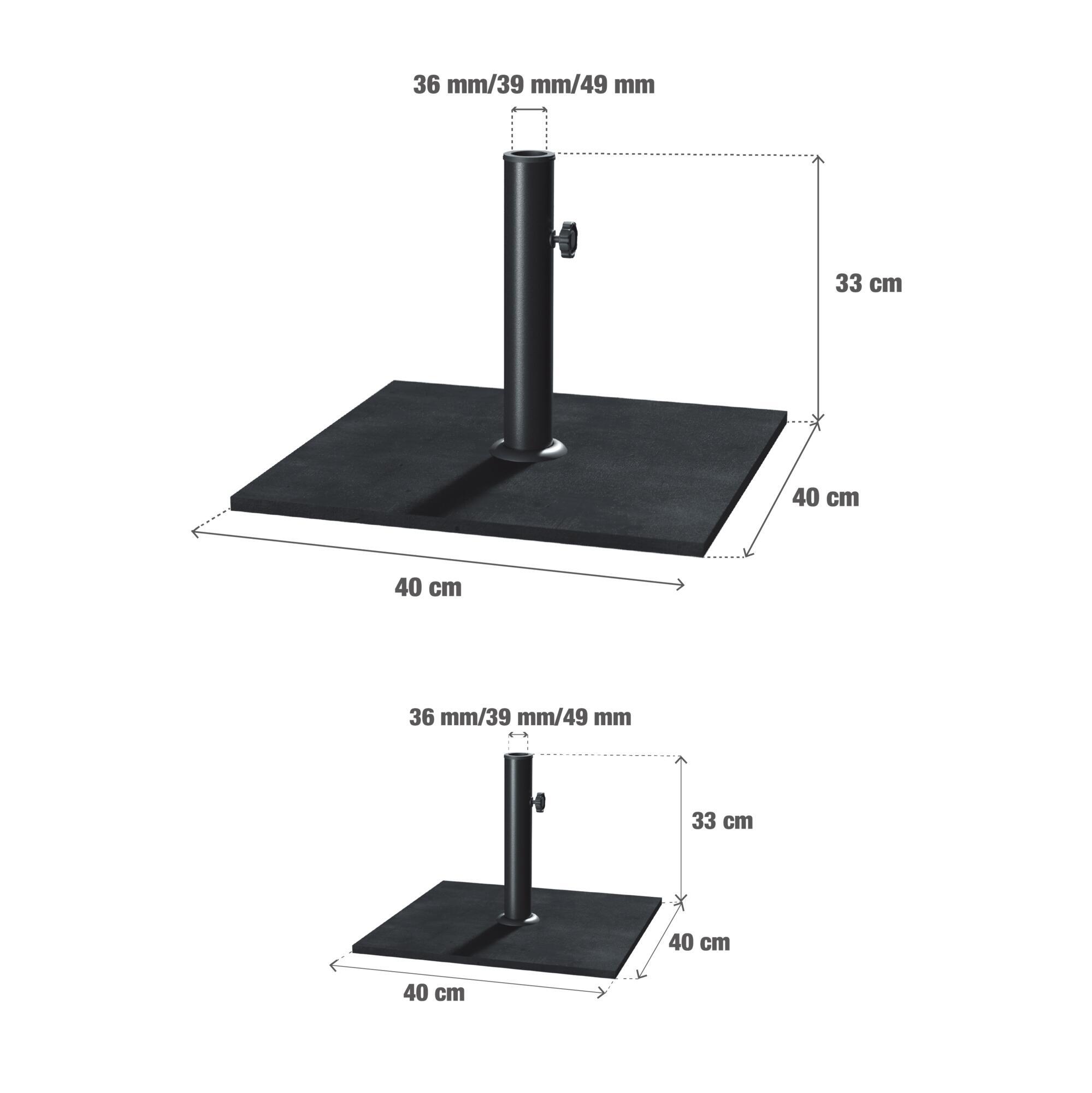 בסיס השמשיה Flax מתאים למוטות ישרים בקוטר של 38 עד 48 מילימטרים. הודות לצורתו השטוחה של הבסיס, ניתן להניח אותו בקלות ובדיסקרטיות מתחת לשולחן. אל תתנו למראה האלגנטי שלו להטעות אתכם - מבנה הפלדה שלו מיועד להעניק יציבות של 25 קילוגרמים לשמשייה שלכם.