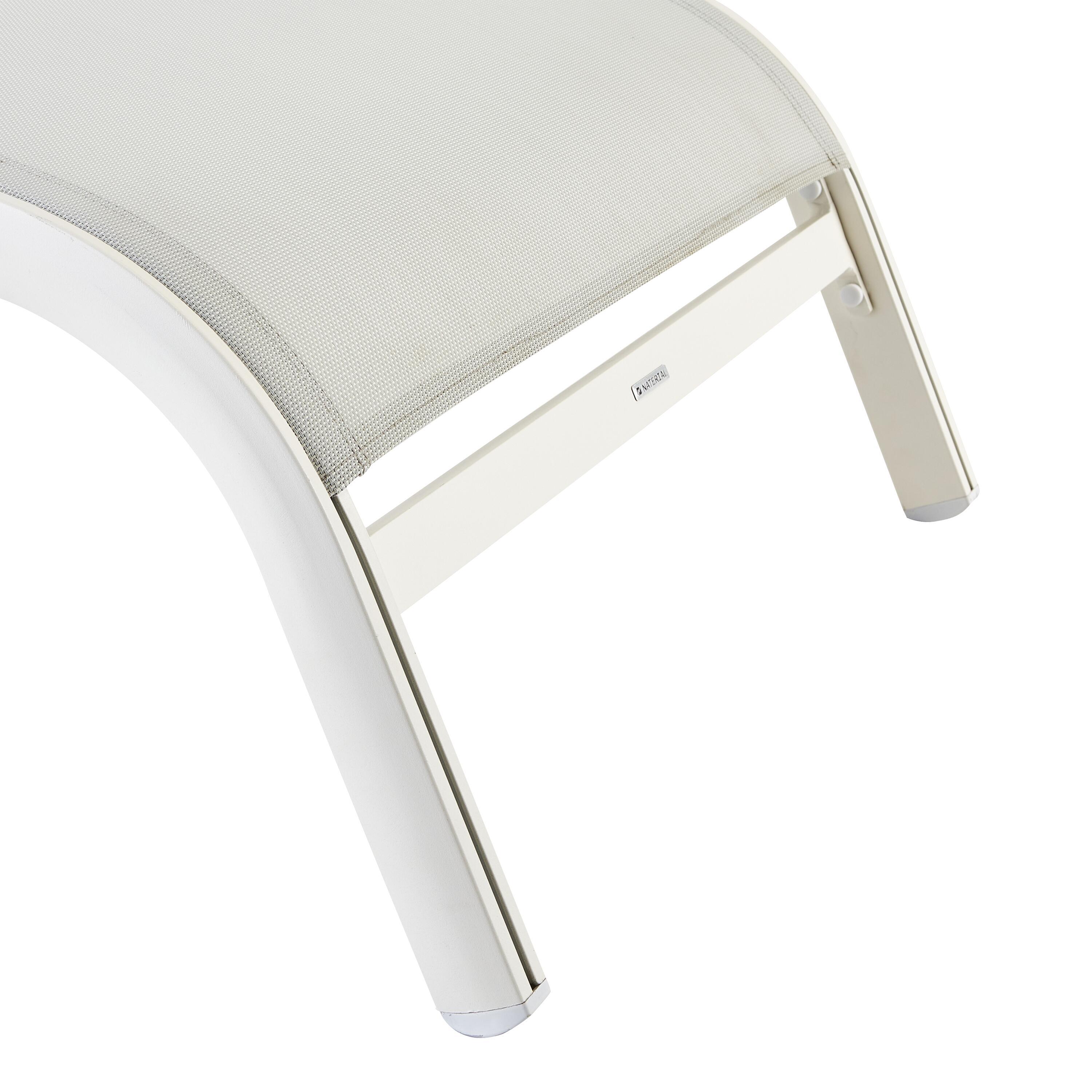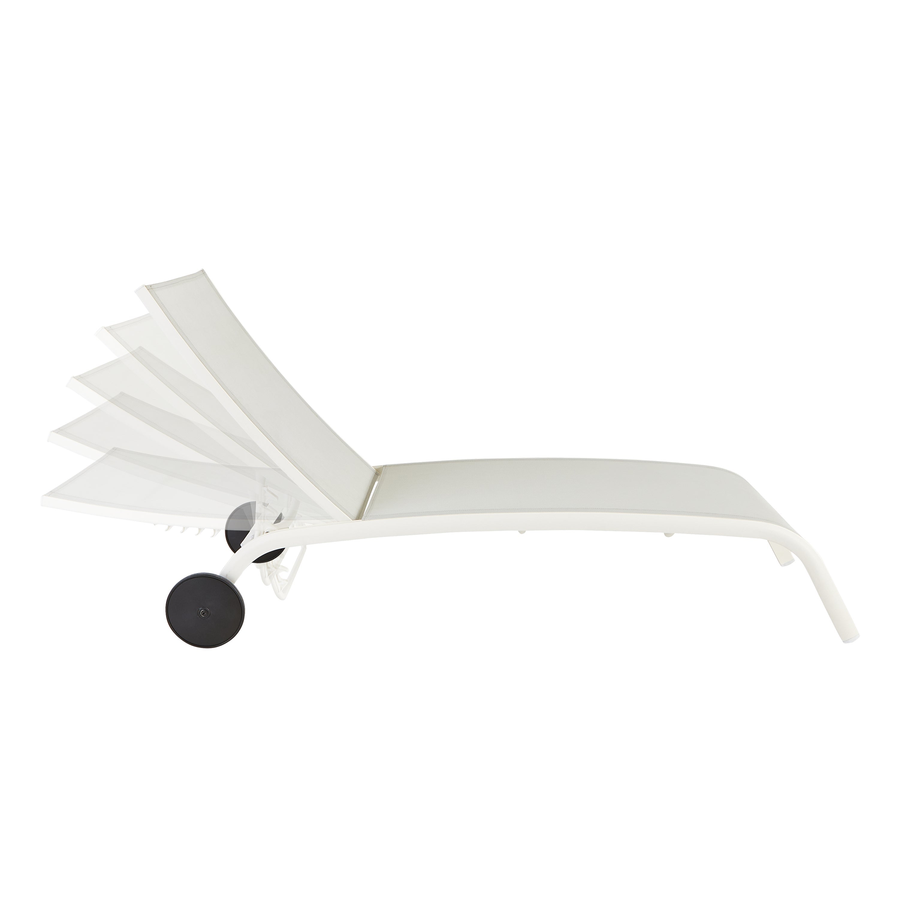 מיטת שיזוף מאלומיניום טקסטילן עם גלגלים, 63X207/175X(גובה) 37/95 ס"מ, גב מתכוונן ב-4 מצבים, שלדת אלומיניום מצופה אבקה, עם לוגו של לוחית אלומיניום, לבן